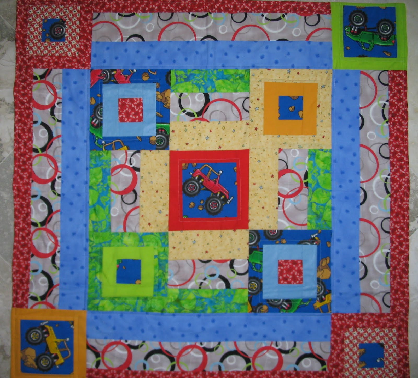I had shown you this while it was in the making. Most of it is from my own scrap stash, but the car fabric was donated.